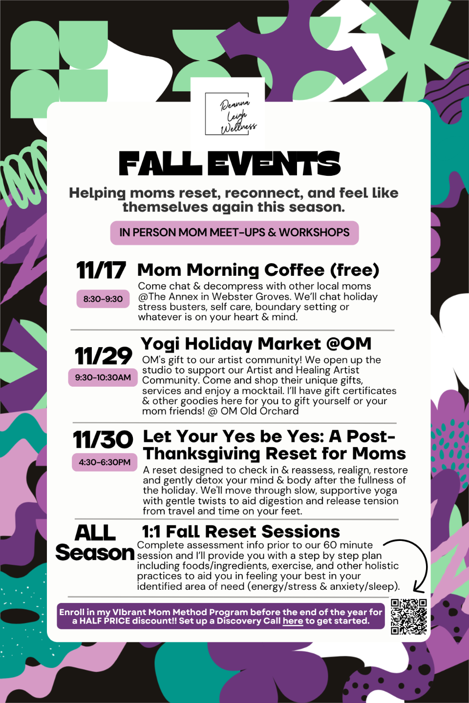 Looking for community, connection, and workshops where you can walk away with tools to help you find calm & connection within yourself, your daily life, and your family? Join us. Can't wait to meet you.
